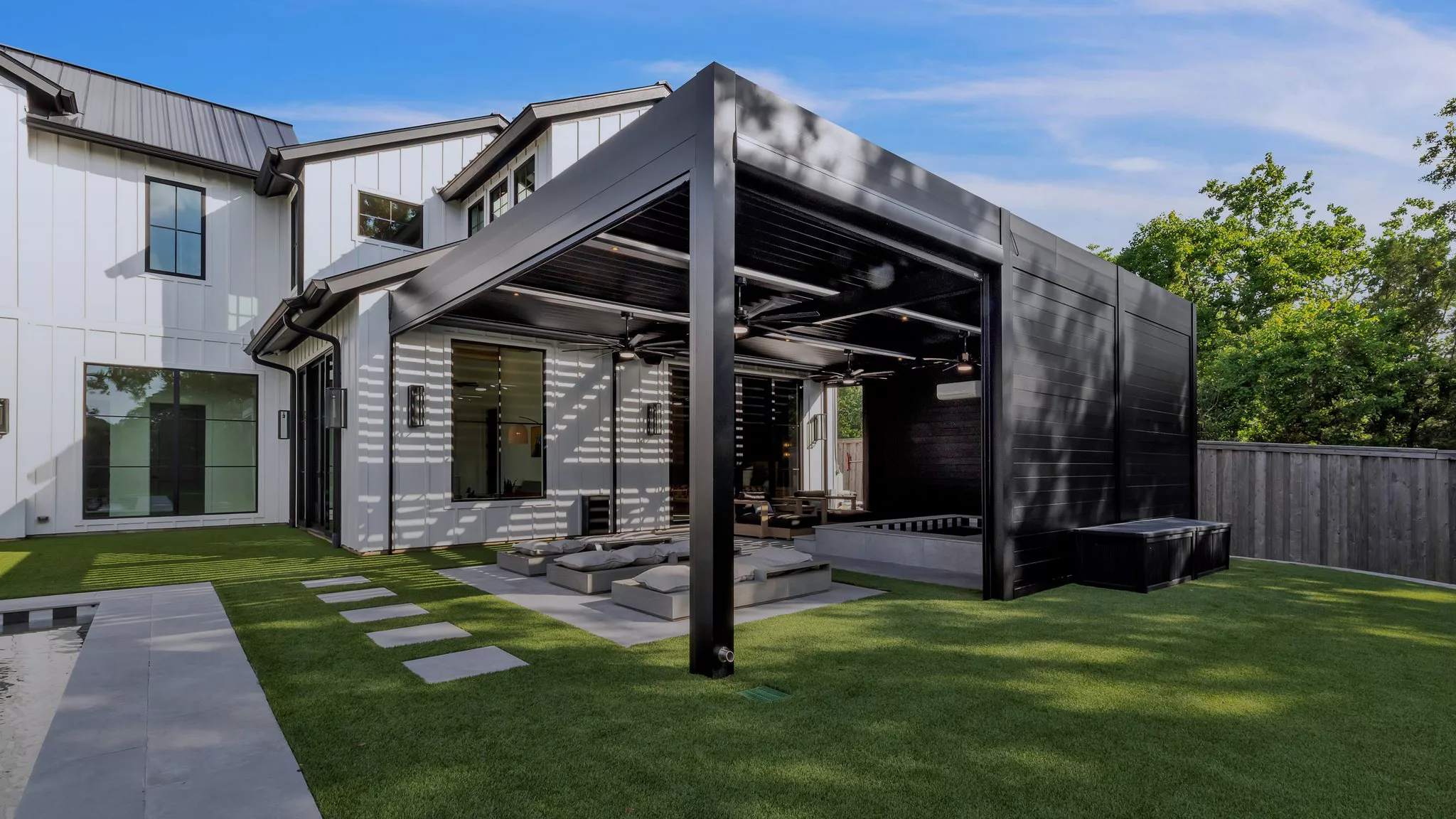 A custom Azenco pergola brings style and comfort to JoJo Fletcher’s retreat — the same craftsmanship now available across Jacksonville, St. Augustin, Fernandina Beach, and all of the greater metro areas.